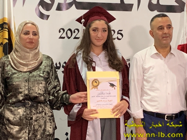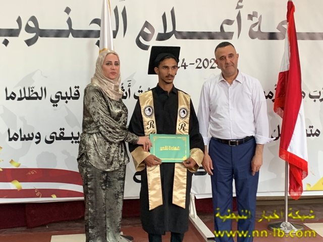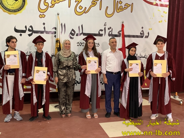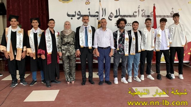 وقال: اسمحوا لي أن أوجّه تحية إجلال وإكبار إلى الأساتذة الأبطال، الشهداء الأحياء… أولئك الذين قدّموا حياتهم فداءً للعلم والوطن، فكانوا هم المتفوّقين الأوائل، وبلحظة استشهادهم ارتقوا إلى أعلى مراتب الخلود، تاركين لطلابهم دربًا من نور. لقد علّمونا أن التفوّق ليس في الدرجات وحسب، بل في التضحية والإخلاص والوفاء. ولأنهم كانوا الأساس، لحق بهم طلابهم إلى المراتب الأولى على صعيد الوطن، ليؤكدوا أنّ مسيرة الشهداء لا تُستكمل إلا بالعلم، وأن دماءهم الطاهرة أزهرت نجاحًا وفخرًا ، كما أتوجه بتحية عميقة وامتنان كبير إلى مديرة الثانوية السيدة نعم جوني، وللهيئتين التعليمية والإدارية على جهودهم المستمرة، وعطاءاتهم التي لم تتوقف يومًا، فكانوا دائمًا سندًا وركيزة أساسية لنجاح طلابهم ، ولا يفوتني أن أوجّه تحية إجلال وإكبار إلى أهالي الجنوب و منهم اهالي الطلاب الأعزاء ، الذين سهروا وضحّوا ورافقوا أبناءهم في رحلة العلم والتفوق، فكانوا مثالًا للصبر والإخلاص والتفاني في سبيل مستقبل أبنائهم. أنتم الحاضنة الأولى للتربية أنتم السند، والشريك، والمقاوم الأول. شكرًا لصبركم، لاحتضانكم أبنائكم في أحلك الظروف، ولتمسككم بالأرض وبالمدرسة وبالحياة.