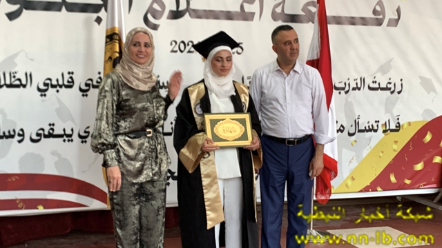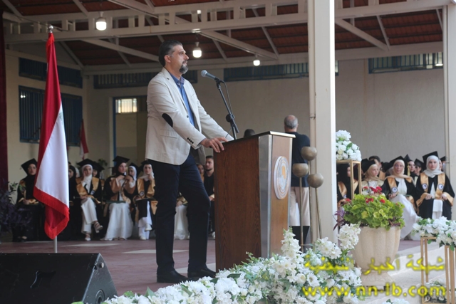 وقال: إنّ هذه اللحظة هي بداية رحلة جديدة. تذكّروا دائمًا أنّ العلم والمعرفة هما أعظم سلاحين يمكن أن يحملهما الإنسان، وأن المسؤولية عليكم كبيرة تجاه أنفسكم ومجتمعكم ووطنكم. احرصوا على التفاني في العمل، والالتزام بالقيم والأخلاق، والسعي الدائم للتميز، فأنتم أمل لبنان ومستقبله، أنتم الأبطال الحقيقيون، نعلم كم عانيتم من التهجير، من الخوف، من انقطاع الدروس أحيانًا، لكنكم عدتم، تابعتم، نجحتم. وها أنتم اليوم تنهُون عامًا دراسيًا وسط الركام، ولكن برؤوس مرفوعة وقلوب مملوءة بالأمل.