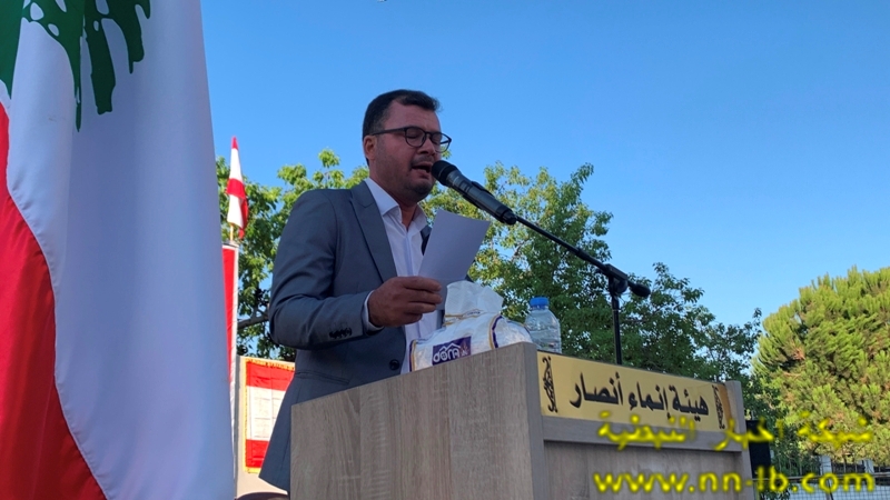 بعد النشيد الوطني ودخول موكب الطلاب المتخرجين ، كانت كلمة ترحيب وتعريف للزميل علي عطوي ، ثم ألقى رئيس هيئة انماء انصار معين عاصي كلمة توجه في مستهلها بالشكر الى ” الطـلاب الـذين وفـوا وتعلـموا، وأجتهـدوا ، فنجحـوا وتفوقـوا كي ترفع الرايـة فـي سمـاء بلدتنا وفي سماء الوطن. فطوبى لطالب تعلم ونجح وألف شكر لمدرسـة ولجامعـة، وهيئة تعليمية ولمجتمعٍ قدر وكافأ وكرم.