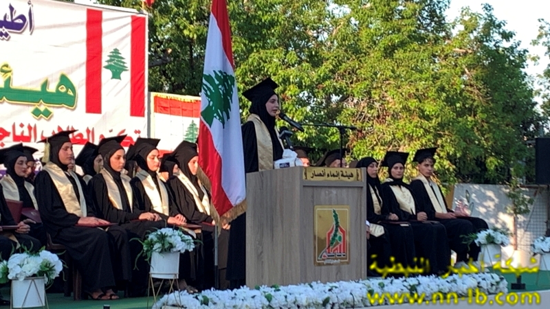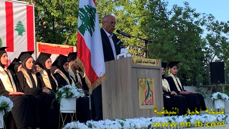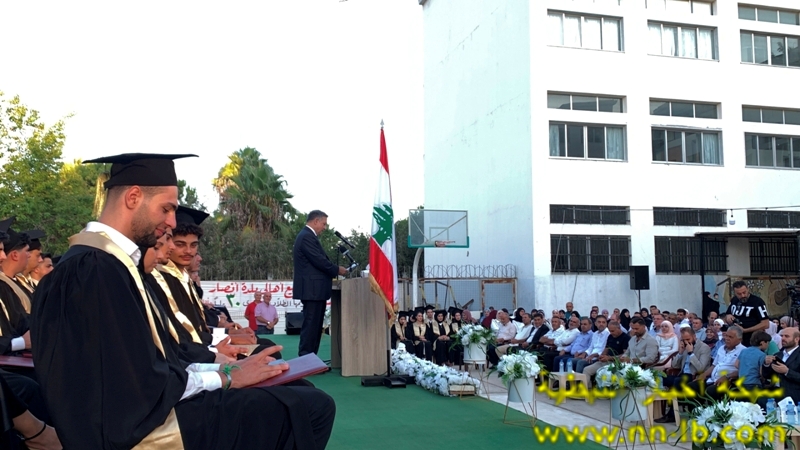 وألقت المتفوقة زينب نظر كلمة بإسم الطلاب المتخرجين ، تلاها كلمة مير ثانوية انصار الرسمية عادل مزنر خاطب في مستهلها الطلاب فقال” لقد اثبتم ان الانسان لا يقاس بما يملك بل بما يتحدى، وان الحياة لا تمنح بل تنتزع من بين انياب الموت، وان من ينجح وسط الركام سيبني غدا وطنا لا يشبه احد غيره ، وطنا لا تهدمه جيوش الارض وحبائل المؤامرات ، فليكن نجاحكم اليوم اهلان تمرد على الانكسار وبيان انتصار على الخراب، قفوا ، وارفعوا شهاداتكم كرايات عالية تقول للعالم ” ها نحن هنا صامدون ، وعلى مجد هذا البلد مؤتمنون “.
