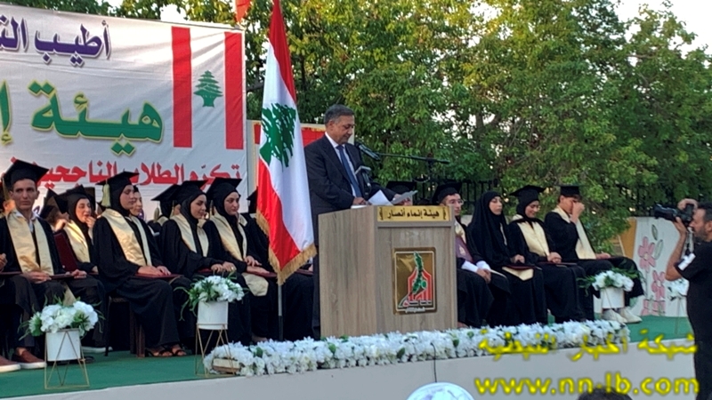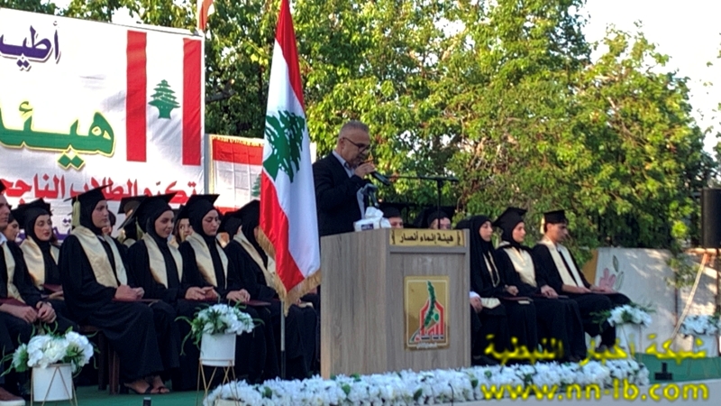 وقال: إننا نعيش اليوم لحظةً نستعيد فيها الثقة بالطاقات الوطنية، ونؤكد من جديد أن لبنان لا يُبنى إلا بعقول أبنائه، وبقدرات شبابه. وإننا إذ نحتفي بنجاحهم اليوم، نحملهم أيضًا أمانة المستقبل، ونشد على أيديهم أن يبقوا على هذا الدرب، درب التميز والعطاء. على المستوى الوطني نؤكد أننا لا نحتاج الى امتحان فيه لجميع أبنائه. لبنانيتنا لأننا كنا السباقين في الإيمان بلبنان الوطن النهائي ومع دولة الرئيس نبيه بري تُردّد أننا لسنا إلا دعاة وحدة وتعاون وأننا منفتحون على أي حوار وطني هادىء يفضي إلى صياغة استراتيجية للأمن الوطني تحمي لبنان وتحرر أرضه وتصون حدوده، من دون محاولات القفز فوق الدستور والميثاق وخطاب القسم والبيان الوزاري وكل القوانين والمواثيق الدولية .