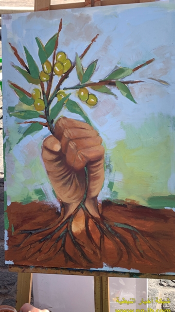 وقالت: السمبوزيوم اليوم عنوان الوان المقاومة ، والصمود ، فلن يمنعنا اي عدوان من ان نلتقي ونرسم ، ونفرح، ونزرع ، وندرس ، هذه ارضنا ، وهنا سنبقى، ـ ونمارس الصمود والمقاومة والتمسك بأرضنا ، وكما لاحظتم السيدة صابرين مروة لوحتها عن شجرة الزيتون، و جذورها المنغرسة عميقا بالارض ، وهكذا نحن منغرسون، ومتمسكون، وصامدون بهذه الارض ولا شيء يزيحنا منها الا الموت.